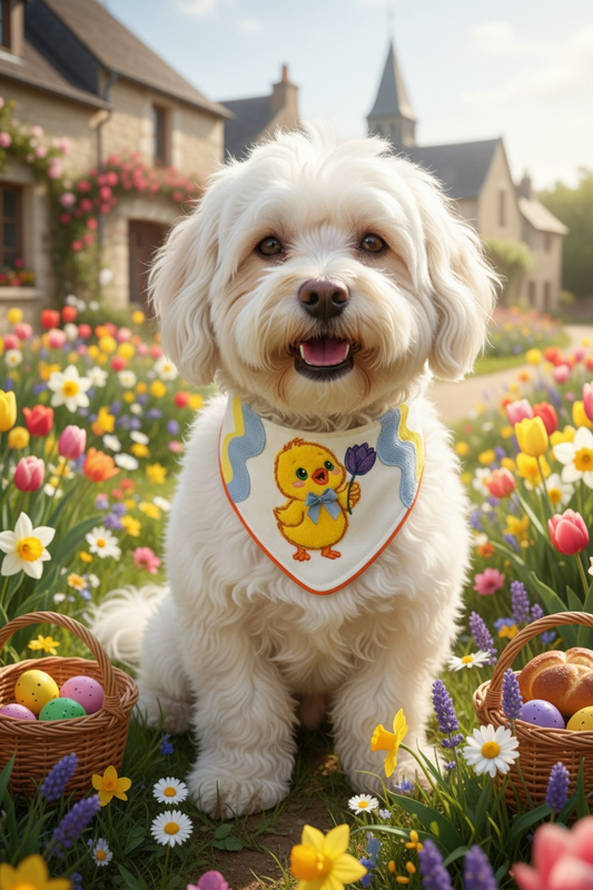 Luxury Spring Chick Dog Bandana – Handmade Appliqué Easter Duckling Pet Bandana